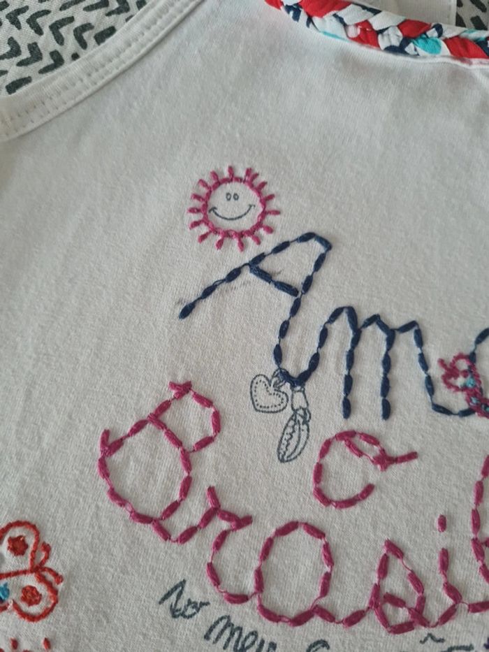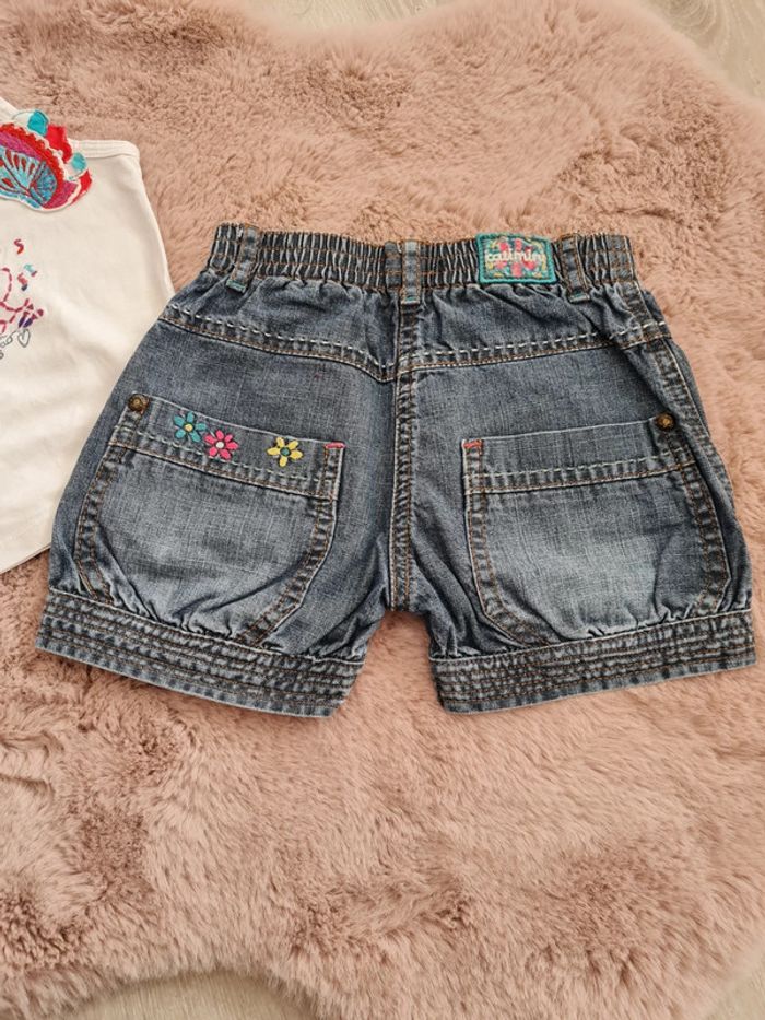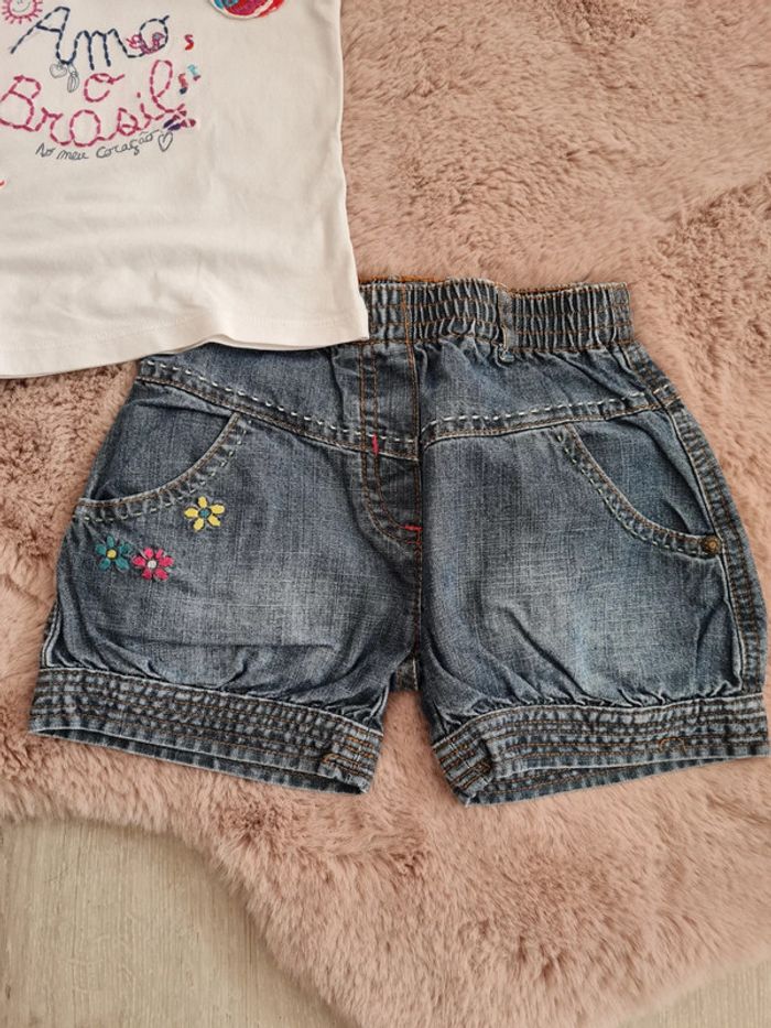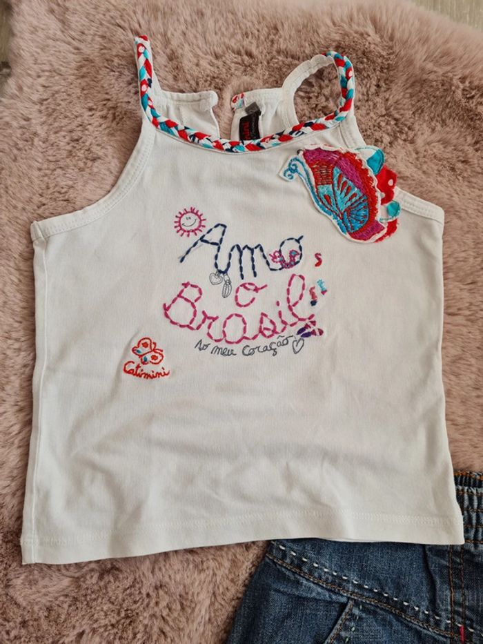 {Ensemble Catimini, comprennant un t-shirt (2ans-86cm) et un short (18mois/81cm) l'un taillant plus grand que l'autre le tout se complète bien pour un 18mois, il y a une petite trace sur le A sinon il est très bon etat} #nicolasgtaille18mois