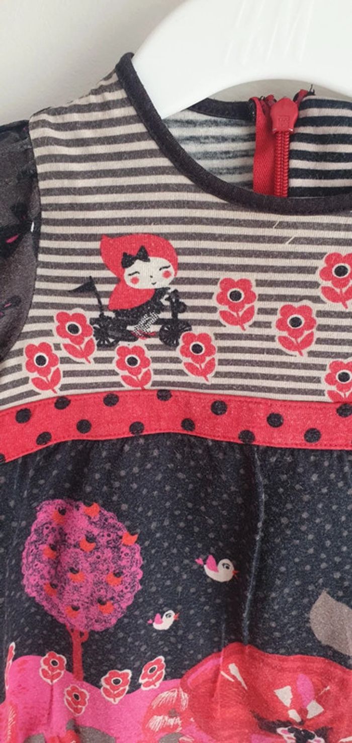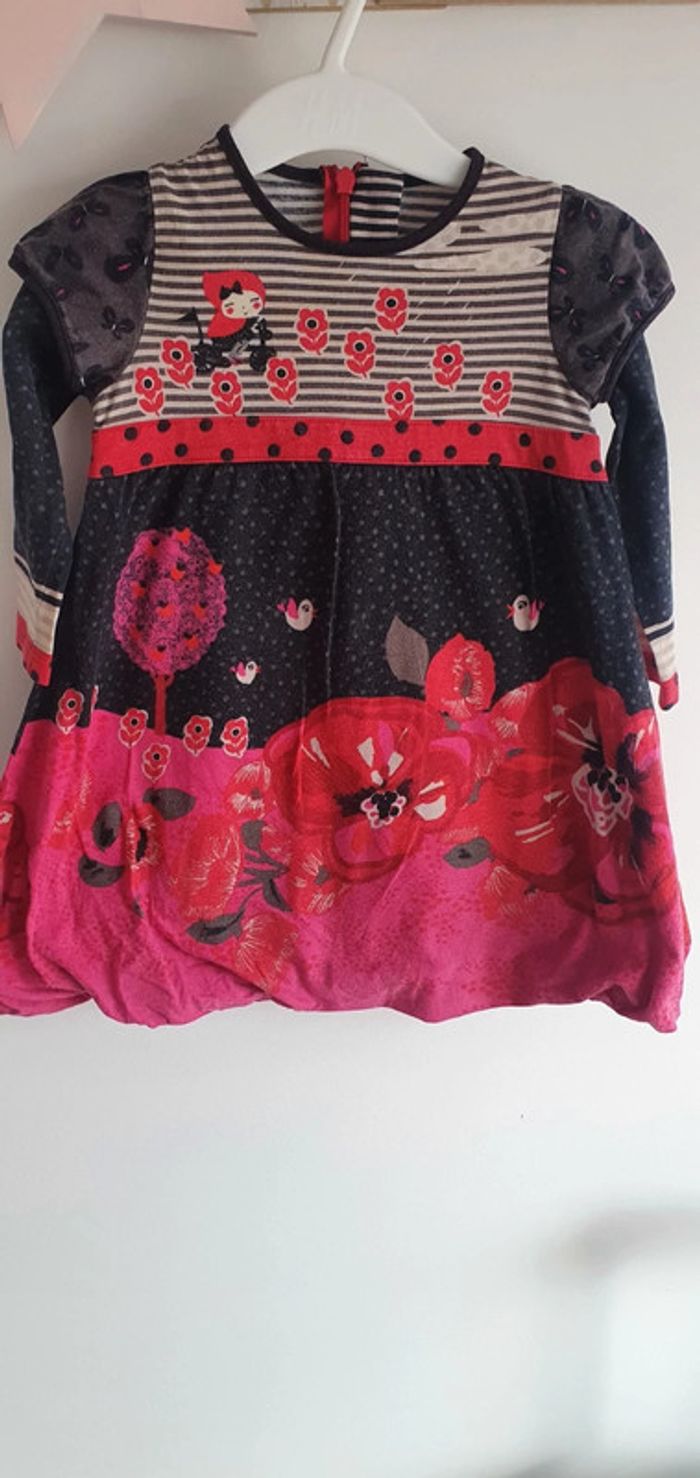 Robe, Catimini, taille 18mois/80cm, taille plutot comme un 12mois, les couleurs sont passées et il y a une tâche sur la manche