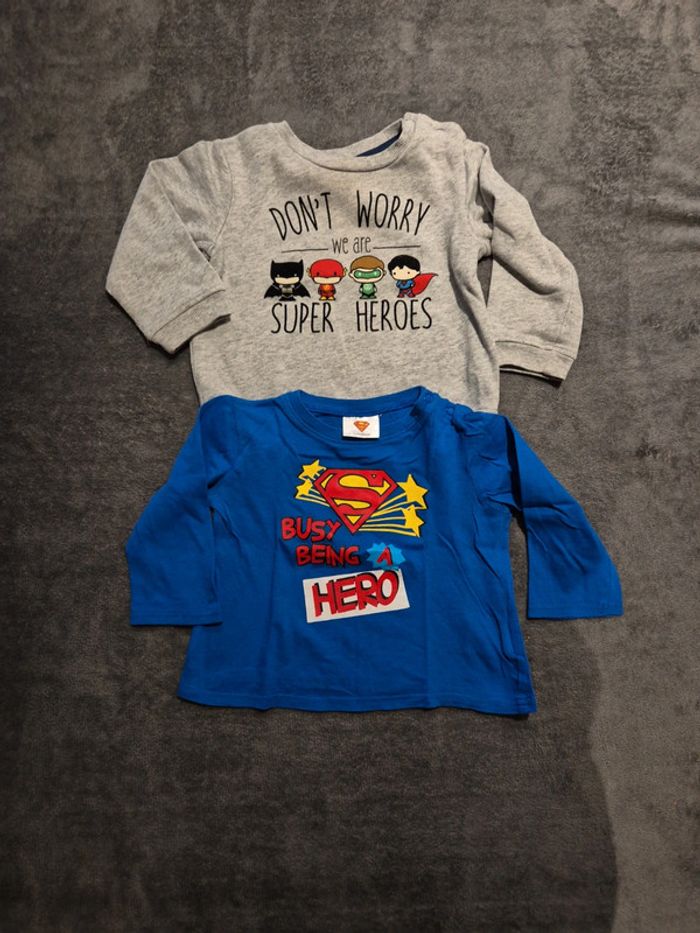 #jessicadebreu18moisgarcon Un pull et un tee shirt. Le tee shirt écrit 24 mois mais il taille plus petit Theme super heros superman batman....