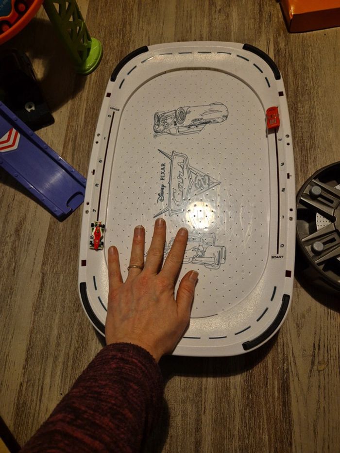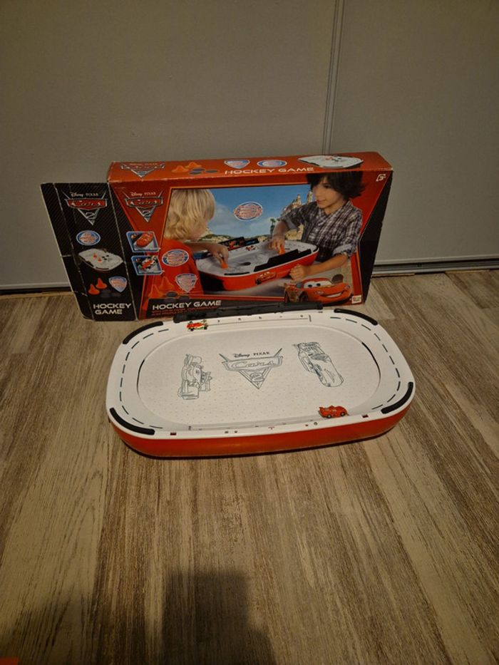 #jessicadebreu6moisgarçon #jessicadebreucars Jeu de hockey cars manque les blocs et les jetons voir photo 2. Photo 3 j'ai mis ma main pour vous faire voir que c'est asez grands. Vendu sans piles