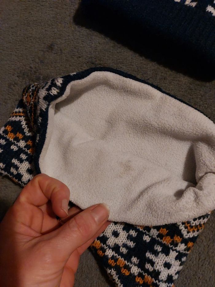 #jessicadebreuaccesoiresenfants #jessicadebreu6moisgarcon #jessicadebreu9moisgarcon #jessicadebreu12moisgarcon Bonnet et tour de cou Tache a l'intérieur