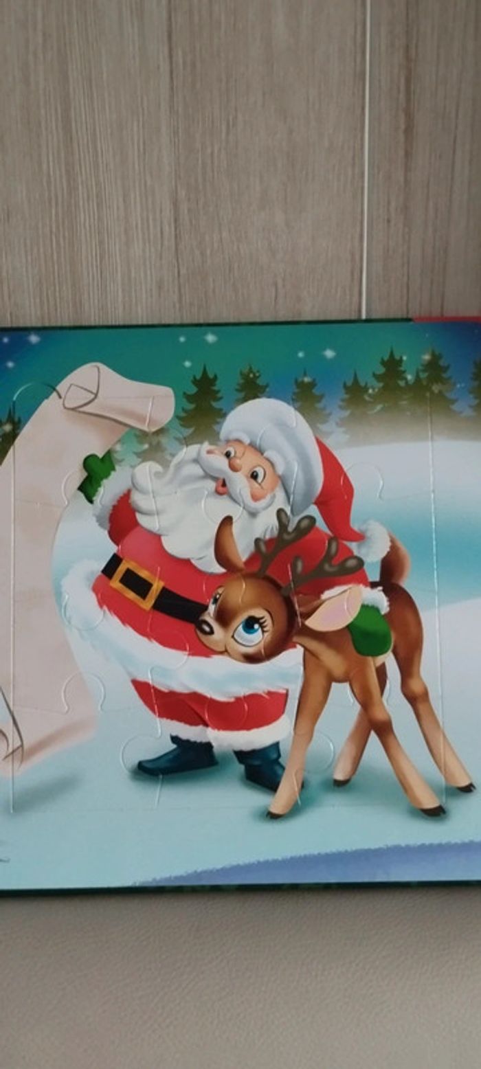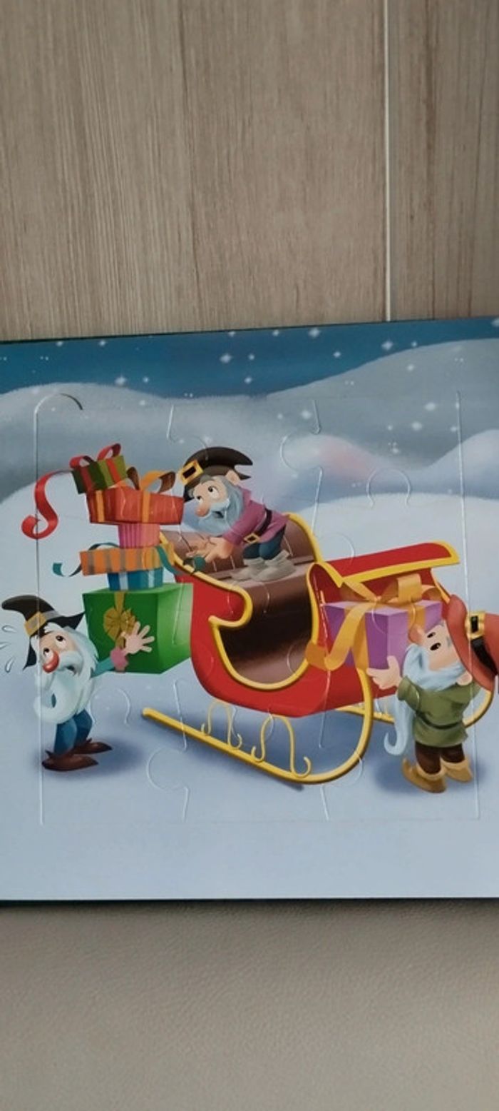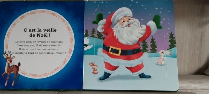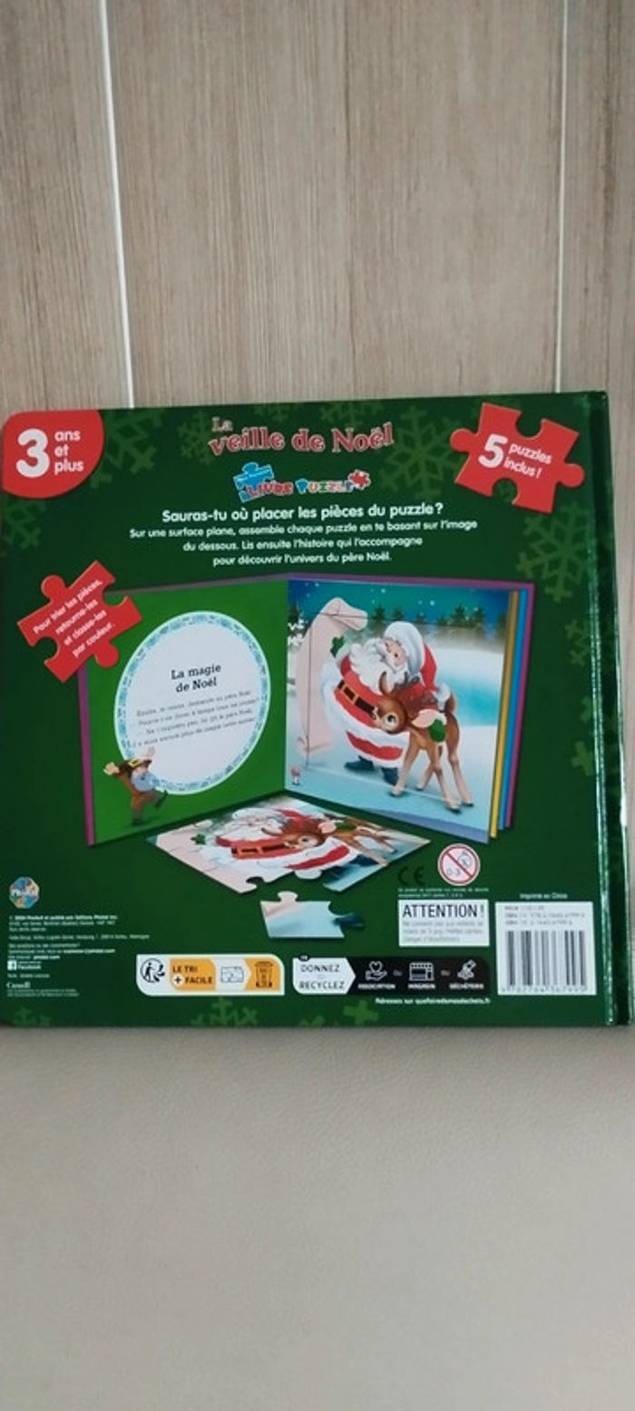 Livre , pages cartonnées et brillantes avec 5 puzzles de 12 pièces chacun.