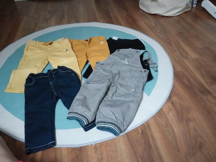 Lot 4 pantalons Lulu castagnette Kiabi 1 salopette sergent major 12 mois