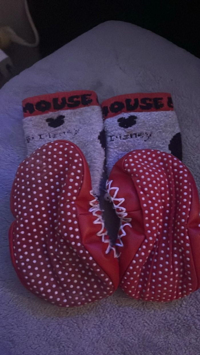 Chaussettes chaussons Très bonne état Taille: 23-26 Couleur: rouge et gris Marque: disney Envoie rapide et soigné Réduction activé si achat en lot