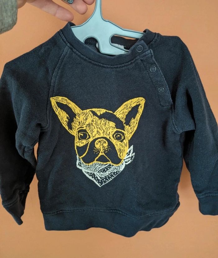 Pull 18 mois avec un bouledogue français