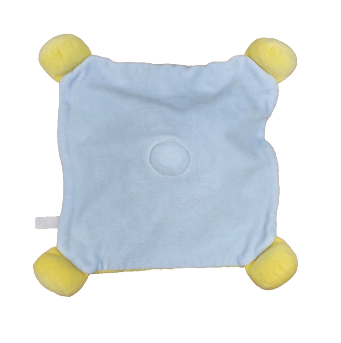 Doudou plat lion jaune orange ALTHANS CLUB grelot envers bleu