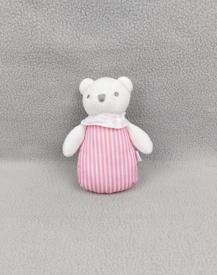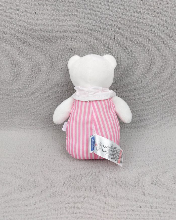 Doudou mini peluche ours blanc JACADI semi-plat rayures blanc rose collerette - photo numéro 1
