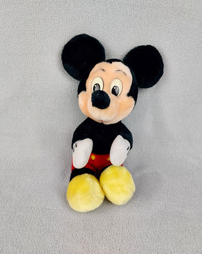 Ancienne peluche Mickey 30 cm EURO DISNEY Bon état, traces noires sur les mains, minuscule trace près du nez, peinture d'un œil abimé Envoi soigné et rapide Réf A10930