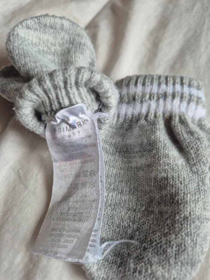 Gants bébé 0-6mois ·Très bon état· Marque Primark Taille Naissance / 44 cm État Très bon état Matière Coton Couleur Gris, Blanc