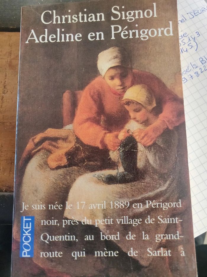 " Ma grand-mère Adeline, nous dit Christian Signol, était une petite femme aux gestes délicats et précis, si menue, si fragile qu'on avait peur, en l'embrassant, de la casser. Son visage étroit et fin s'illuminait de deux yeux gris qui avaient la transparence secrète des fontaines (...) Elle avait la peau si fine que sa chair paraissait à vif sur le monde... " Adeline, simple paysanne tout illuminée de modestie et de bonté, gravit la pente de son destin : le travail, parfois si dur, les guerres, tellement cruelles, mais aussi la magie du rythme des saisons, les joies qu'apportent l'amour, les enfants... Adeline, une femme modeste, dont son petit-fils nous fait un portrait sensible et attachant, merveilleusement tendre, Adeline dont le témoignage nous restitue dans toute sa grandeur les " valeurs essentielles sur lesquelles ont vécu nos campagnes pendant des milliers d'années ". 📣 Plein d'autres livres dont romans, etc via 👇 #angelotitou160304livresadultes 📢 Pensez aux lots ! Mes réductions sont activées dès deux articles ⛔ PAS D'ENVOI VIA VINTED GO ❌ TROP DE COLIS PERDUS