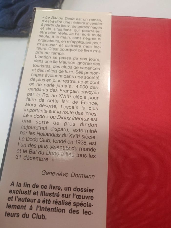 Le dodo, c'est un oiseau de l'île Maurice, exterminé par les Hollandais au XVII esiècle. Chaque 31 décembre, le « bal du dodo » rassemble les Mauriciens blancs, descendants des Français envoyés là sous Louis XV. Bien qu'élevée en Europe, Bénie de Carmoët est des leurs. A la mort de sa grand'mère elle retrouve l'île, et tous les enivrements de l'adolescence. A sa suite, parmi un foisonnement de personnages du passé et d'aujourd'hui - pirates et médiums, coopérants et marins - la romancière du Bateau du courrier et du Roman de Sophie Trébuchet nous entraîne dans un monde bruissant, parfumé, mystérieux, charmeur. Une histoire d'amour et de magie ! 📣 Plein d'autres livres dont fictions, romans et autres via 👇 #angelotitou160304livresadultes 📢 Pensez aux lots ! Mes réductions sont activées dès deux articles ⛔ PAS D'ENVOI VIA VINTED GO ❌ TROP DE COLIS PERDUS