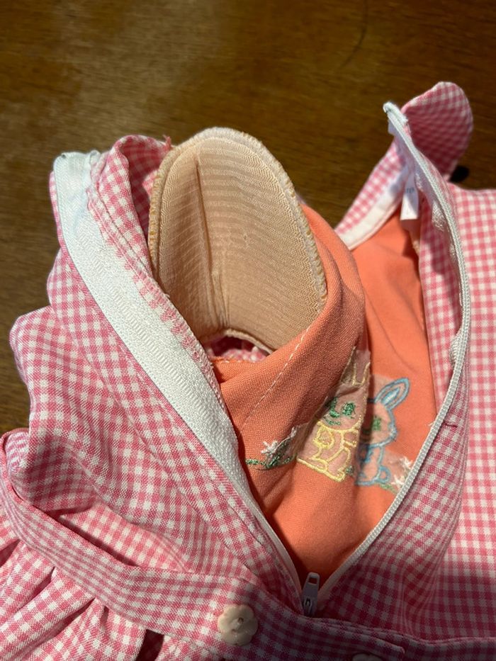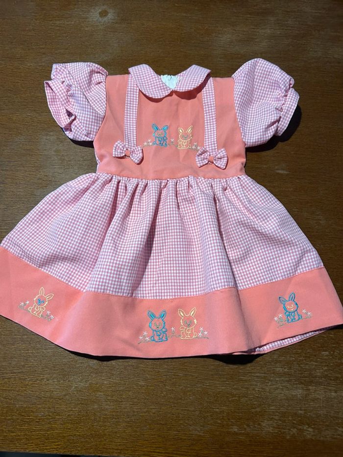 Robe blanche et rose 2 ans vient du Portugal à était porter sur une poupée en décoration
