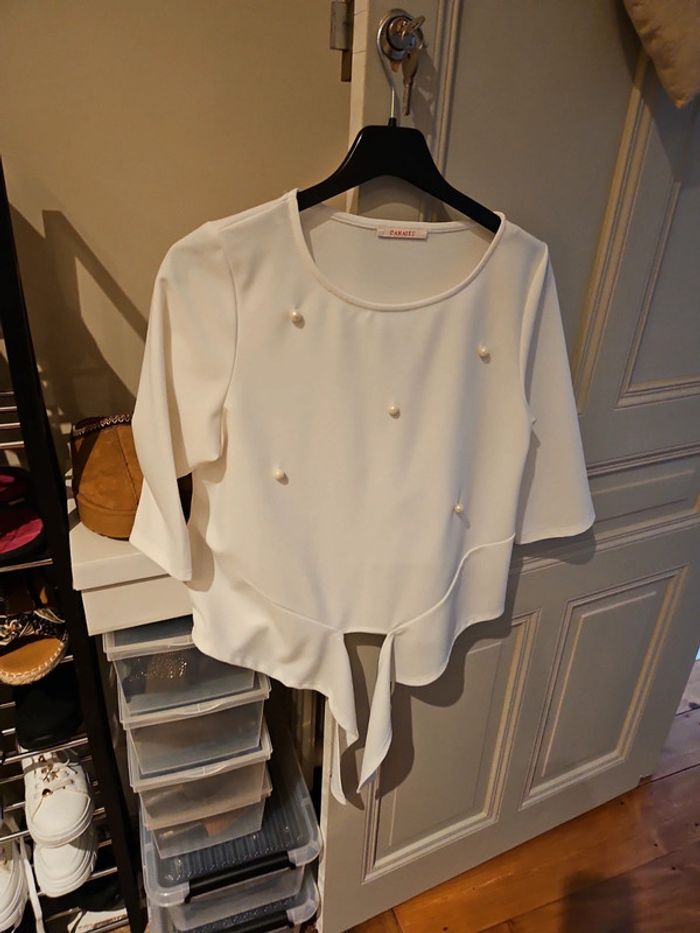 Petit haut blanc taille M (manque étiquettes de la taille ) manque une perle.