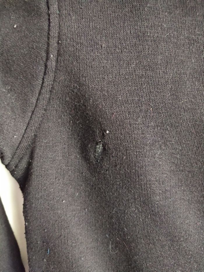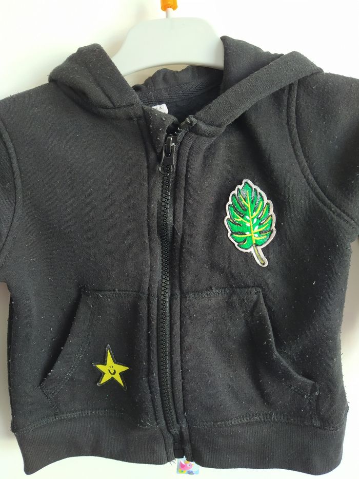 J'ai voulu la customiser avec des patchs thermocollants seulement ils n'ont pas résisté aux petits doigts ni à la machine du coup ma méthode a été un peu radicale : de la colle extra-forte qui a transpercé (ce photos). Je vous l'offre pour un achat de plus de 10€, il faudra juste me la demander