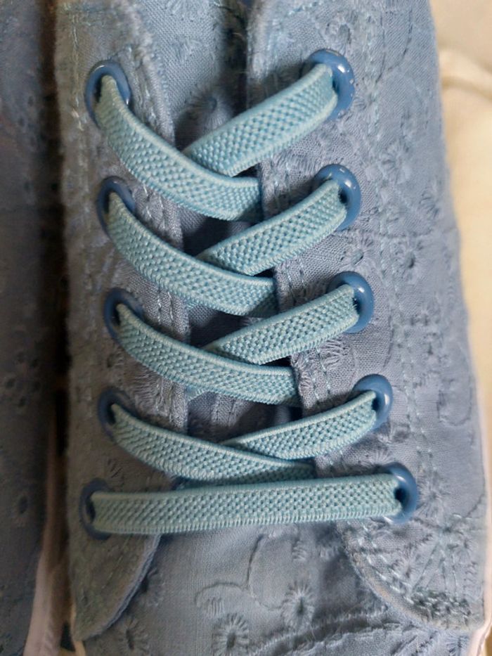 Baskets tissu broderie anglaise bleue pointure 35 - photo numéro 4