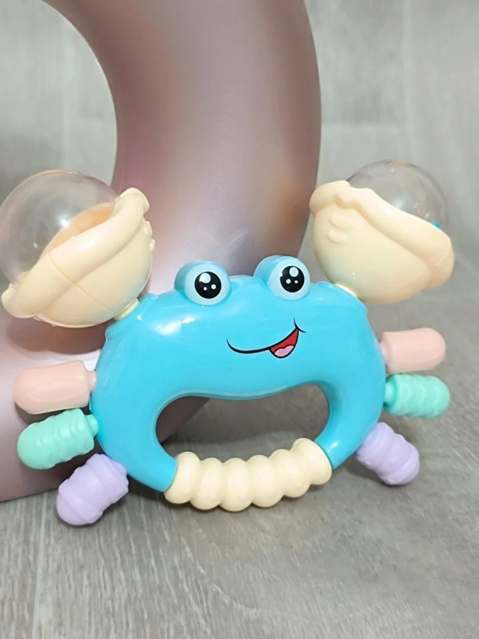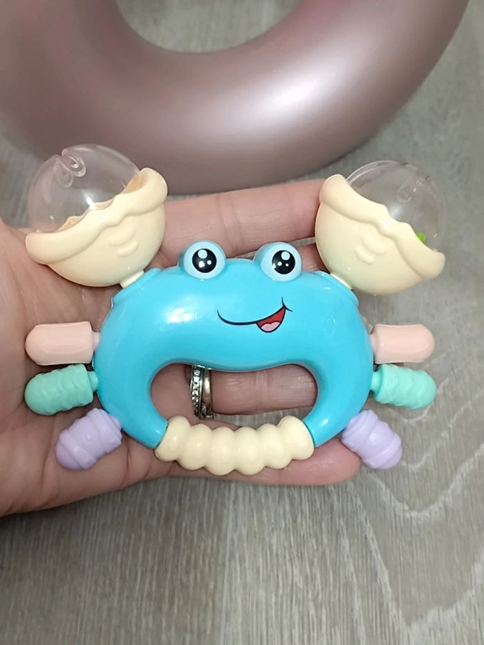 📍Jouet crabe hochet multifonctionnel. 📍Le jouet est dur et les pattes sont en silicone, les 2 grosses boules font offices de maracas. 📍12,5 x 9,5 cm. 📍Neuf. 👉Le jouet de dentition se compose de différentes matières et formes qui participent également à l’éveil des sens de bébé. Plus qu’un simple anneau de dentition, c’est un jouet d’éveil pour bébé. 👉Exempts de BPA, PVC, plomb, phtalates, latex et cadmium: ils respectent la norme européenne en vigueur (DN EN71-3) sur les produits destinés aux bébés ou jeunes enfants. 👉À mordiller sans modération ! 👉Pour trouver d'autres accessoires c'est par ici : 🔎#elisabethDesignAccessoireEnfant 📫⏳ Envoi rapide et soigné le jour même de l'achat dans la mesure du possible! 🤝 Frais de port ajusté au plus bas.