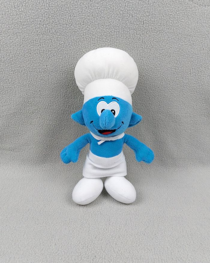 Peluche doudou Schtroumpf cuisinier THE SMURFS 2016 PEYO bleu blanc 28 cm - A10959 - photo numéro 1
