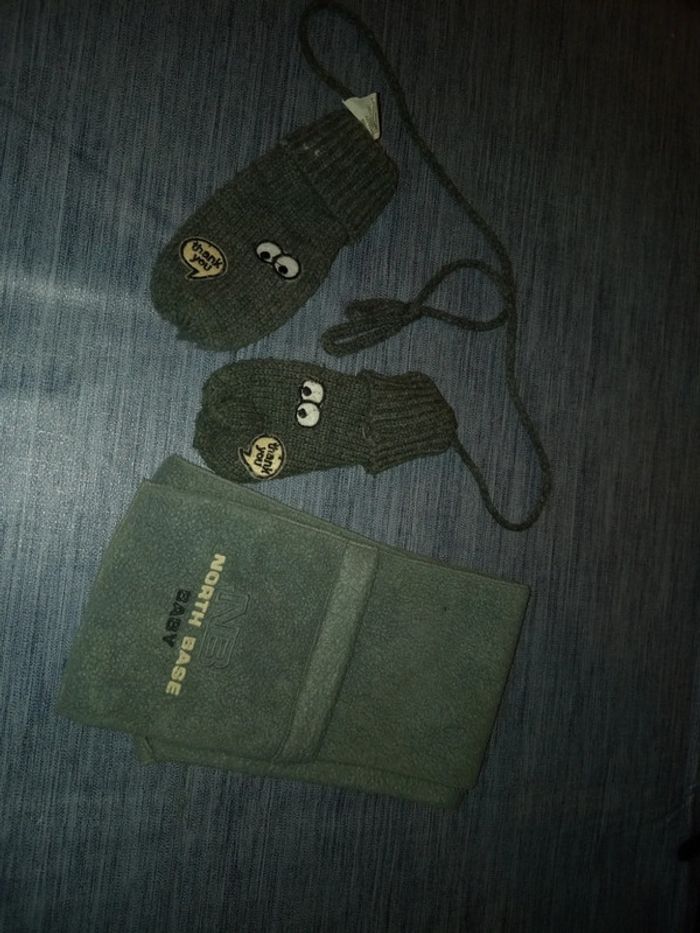 Moufles bébé et écharpe
