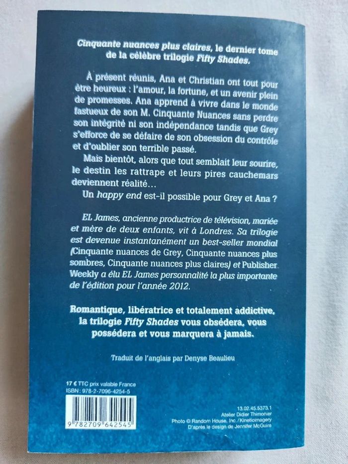 📍50 nuances plus claires. Livre de 594 pages en très bon état. ⚠️En très bon état. 👉Pour trouver d'autres livres c'est par ici : 🔎#elisabethdesignLivre 📫⏳ Envoi rapide et soigné le jour même de l'achat dans la mesure du possible! 🤝 Frais de port ajusté au plus bas.