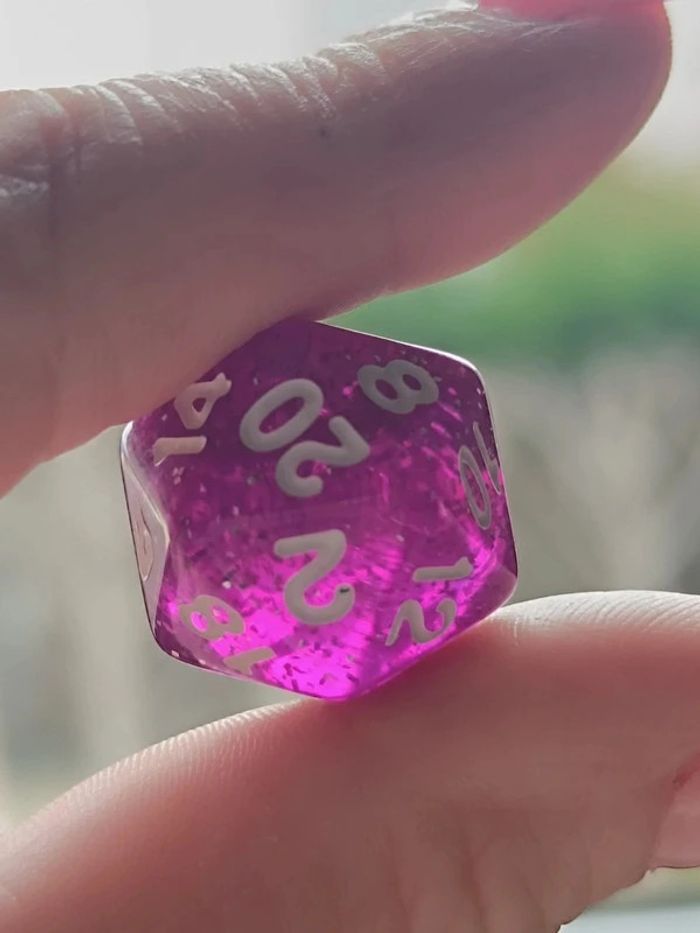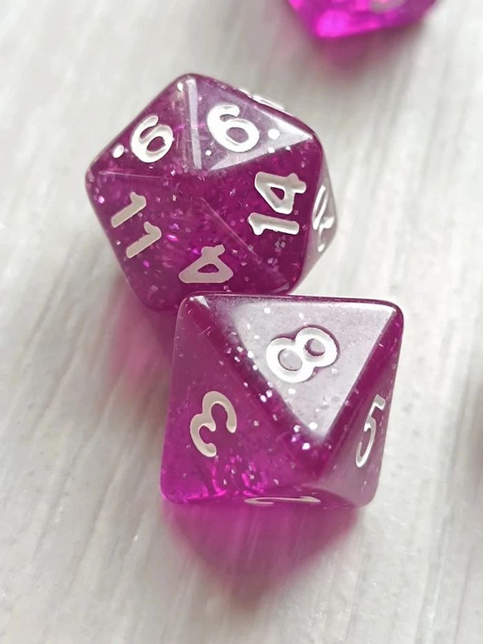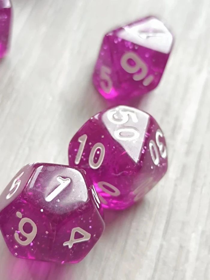 Lot de 7 dés, violet pailleté originaux pour activités - photo numéro 7
