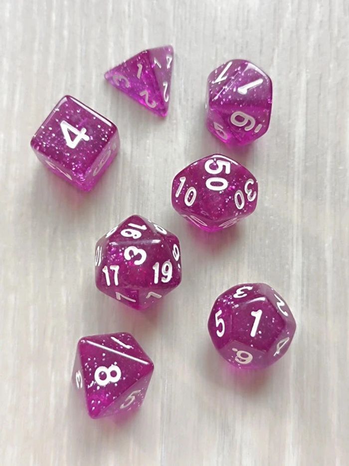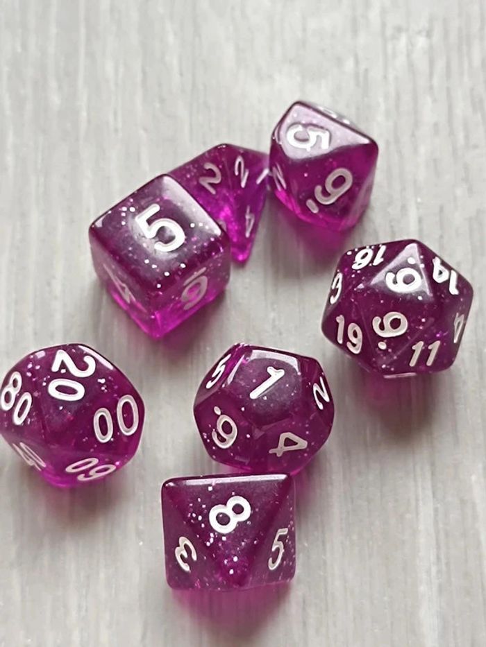 Lot de 7 dés, violet pailleté originaux pour activités - photo numéro 1