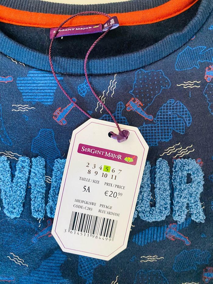 Très beau Sweat de chezsergent Major Coton majoritaire Intérieur doux Taille cinq ans Neuf. Avec étiquette qui n’a jamais été porté