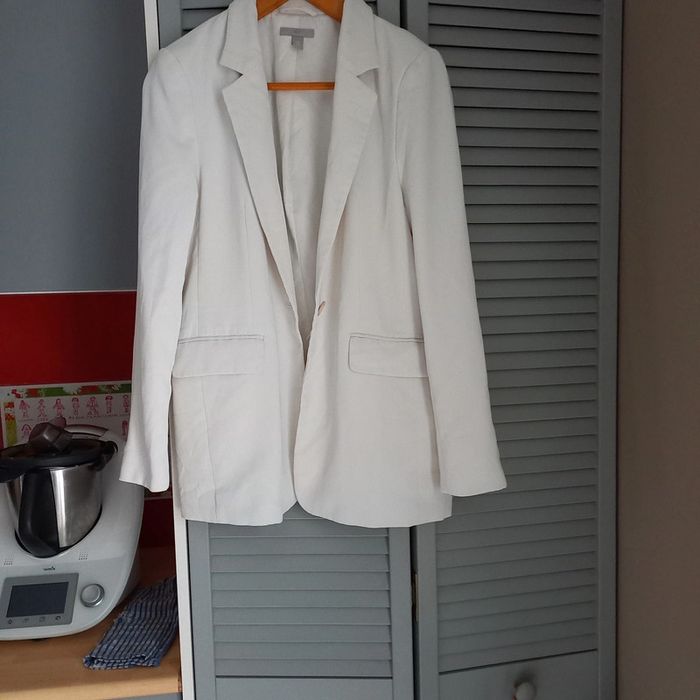 Veste blanc cassé avec 1 bouton poches et boutons décoratifs en bas des manches Boutons de rechange H&m Taille s