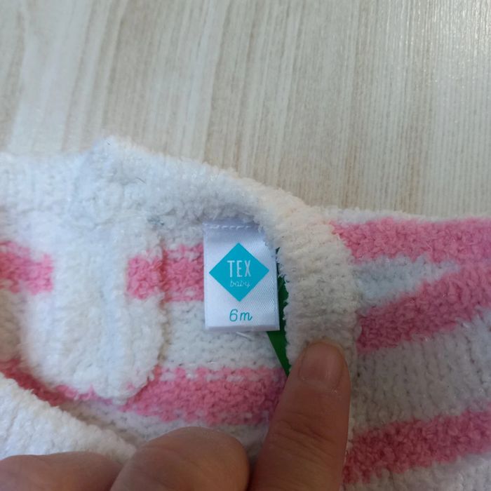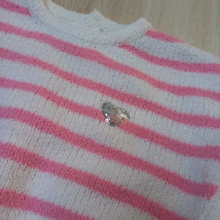 Pull rayé tout doux blanc et rose Coupe arrondie Tex 6 mois