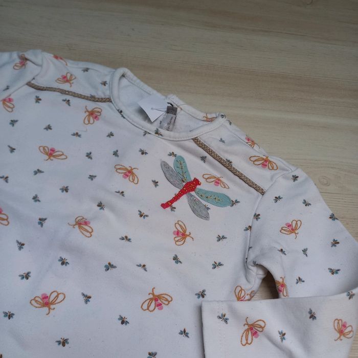 Sweat blanc a motifs papillons et libellule Pressions dans le dos Catimini Taille 18 mois
