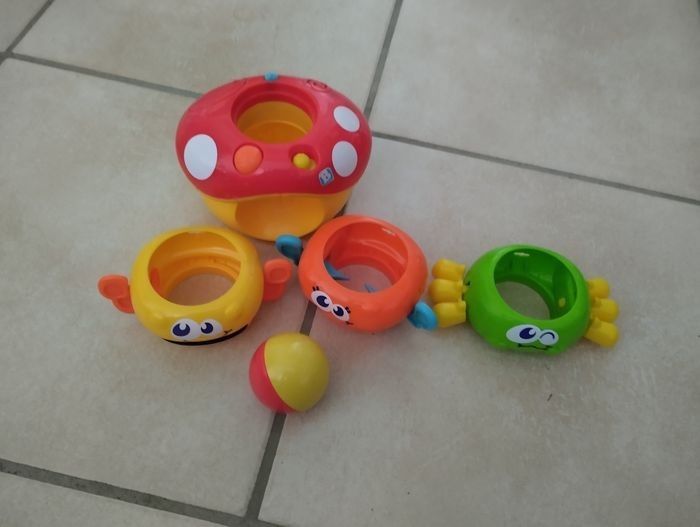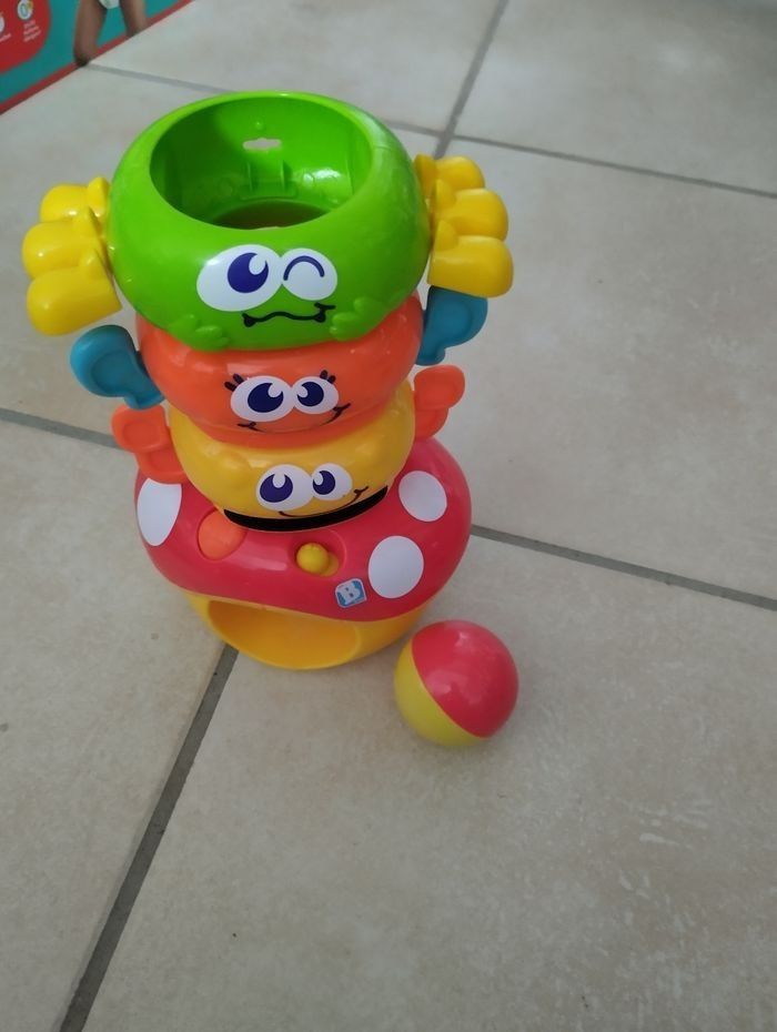 En excellent état. L'enfant doit empiler et faire passer ma balle en haut, une musique se déclenche. Développe les compétences de construction, Développement visuel. Vendu sans les piles Maison non fumeurl