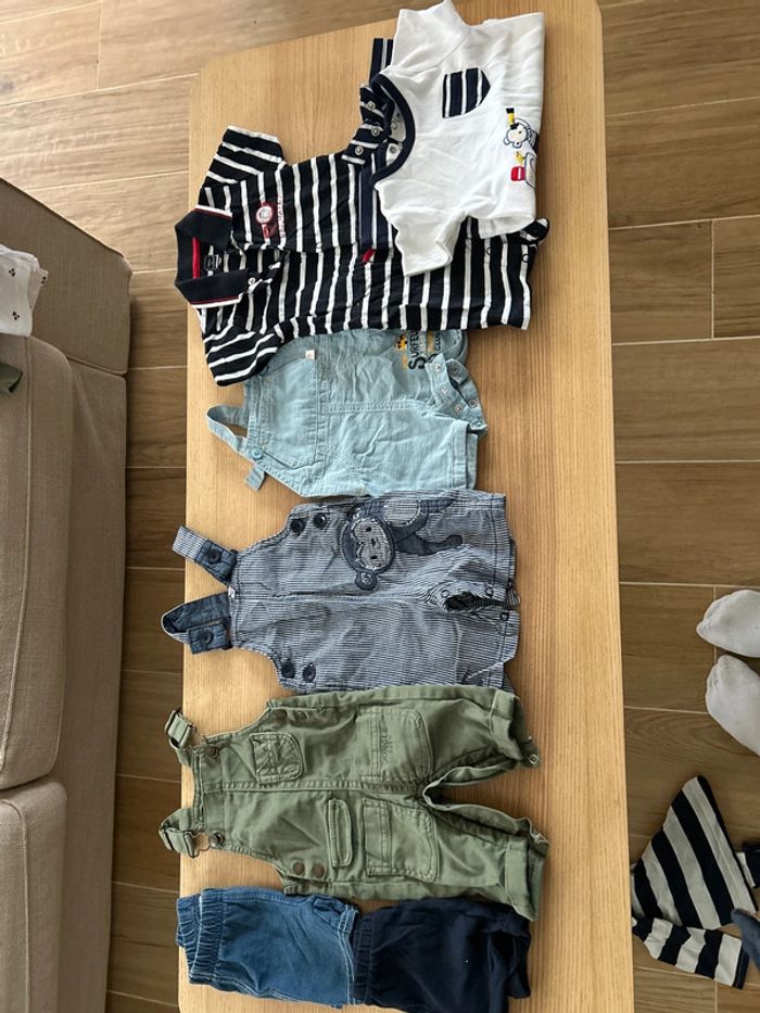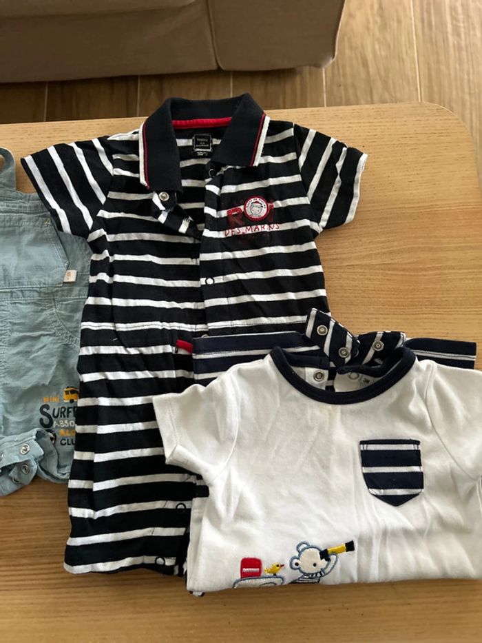 Bonjour, Je vends ce lot, combishort, en parfait état, sauf la dernière qui a une légère tache devant, 5 combishort et 2 short, en taille 3 mois, marque inconnu, Mp si vous avez des questions,