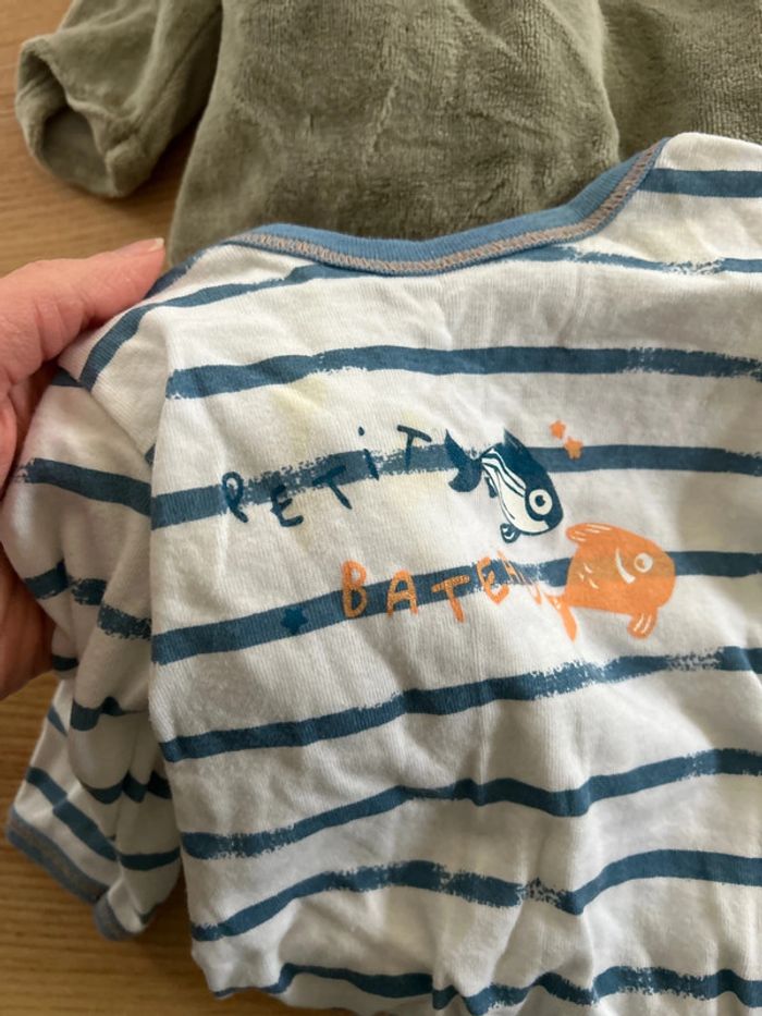 Bonjour, Je vends ce lot de pyjama, en parfait état, taille 3 mois, 2 verbaudet et 2 petit bateau (1 légèrement taché), Mp si vous avez des questions,