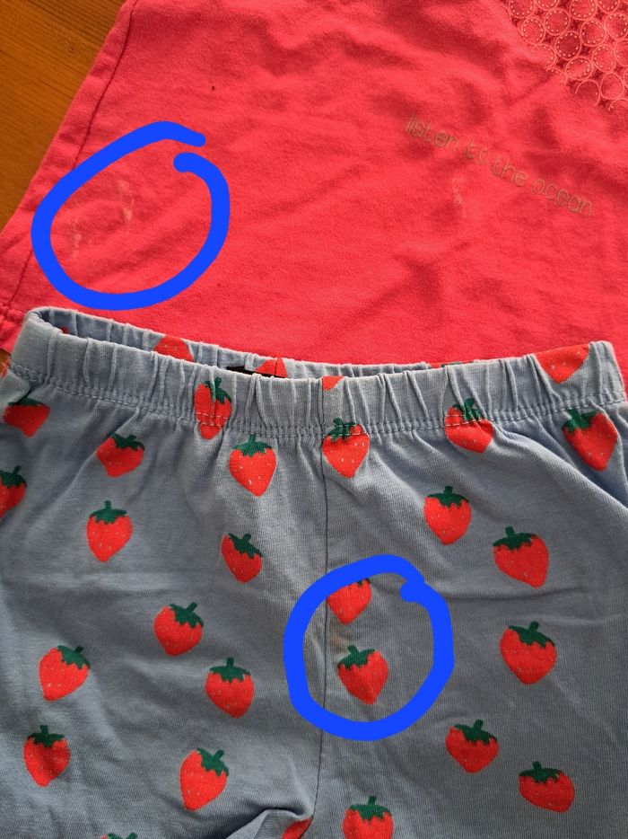 3 ensembles une robe salopette un short thaïlandais Un leggings court je donne le short et t-shirt en dernière photo car petites taches Entourées