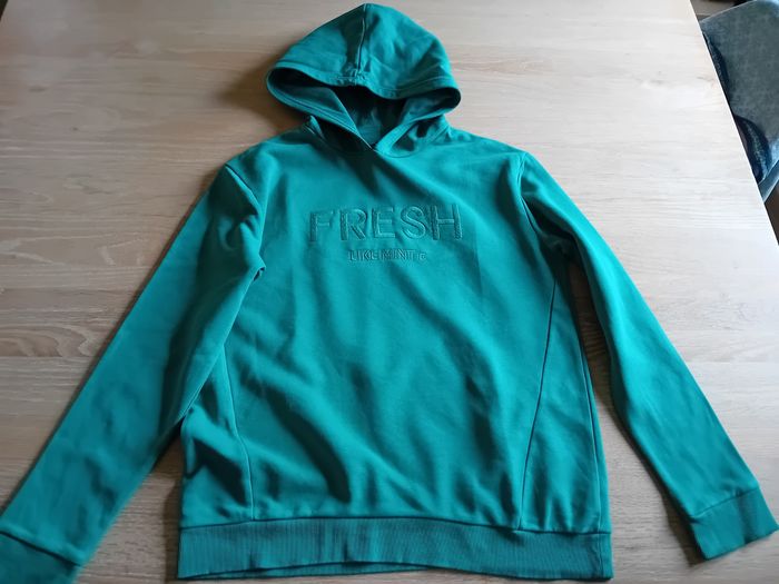 Sweat à capuche fille de marque Okaïdi comme neuf (porté une ou deux fois). Taille : 14 ans Couleur : vert (le plus est plus clair, se rapproche de la couleur de la dernière photo). #fille14anssigtmoi #okaidifillesigtmoi