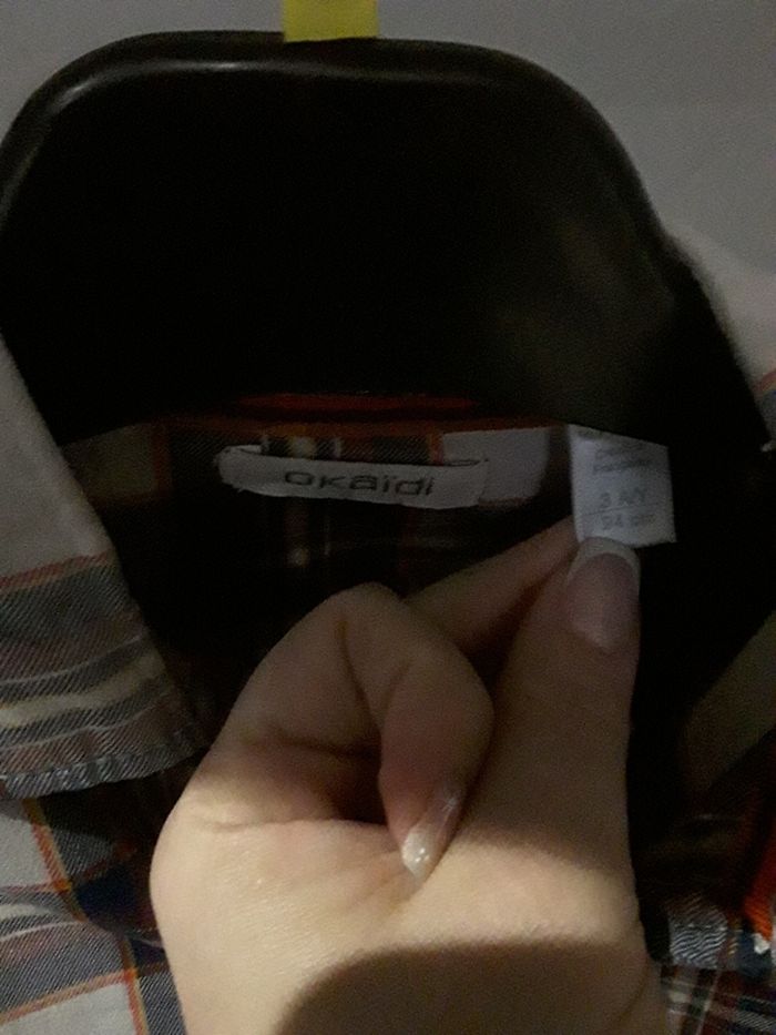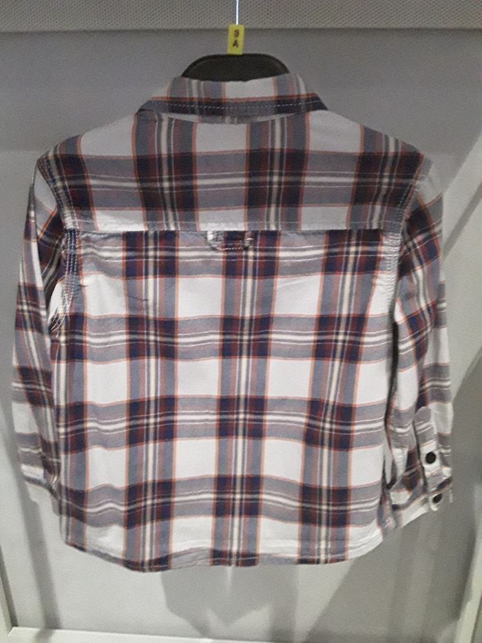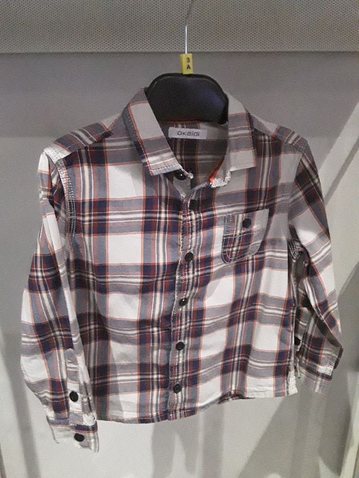 Chemise de marque Okaïdi ,en taille 3 ans, de couleur rouge orangé bleu ,en très bon état