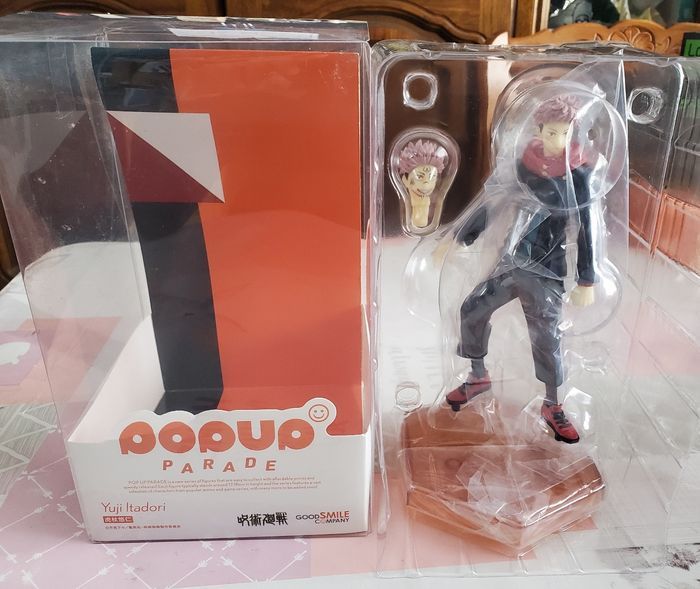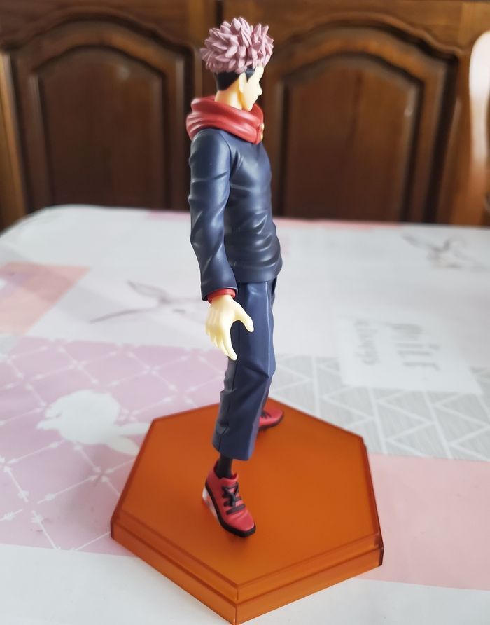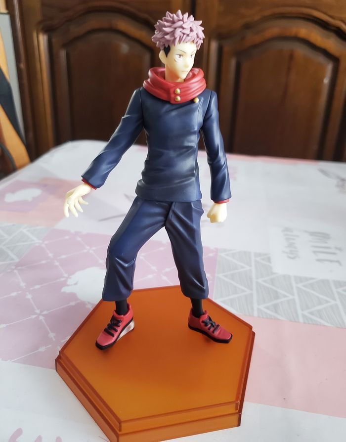 Figurine jujutsu kaisen yuji itadori en très bonne état 17 cm de hauteur ses t'une officielle avec sa boîte d'origine. Tête interversible