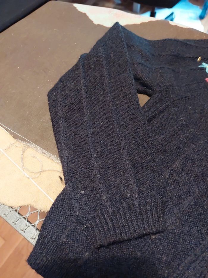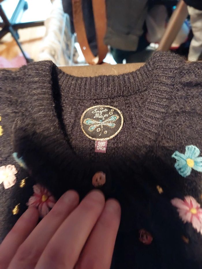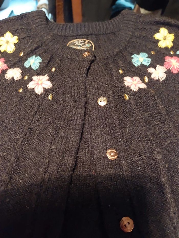 Gilet hiver à boutons Chaud Contient de la laine Noir avec fleurs sur le haut