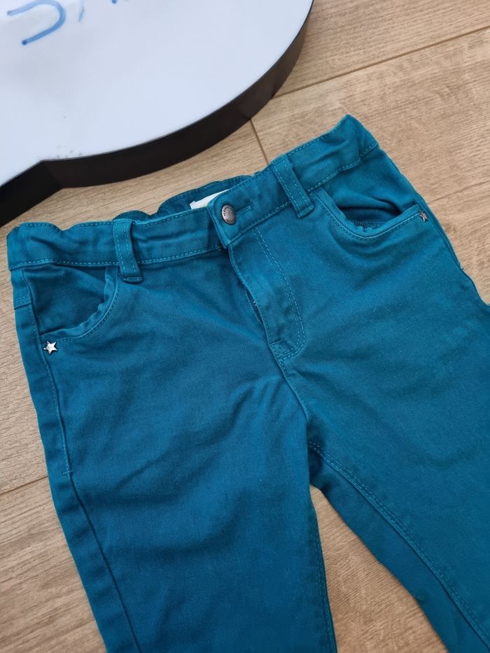 Jean's coupe droite pour fille 👧🏻 Poche devant et derrière Bouton pression et taille réglable 🎨 Bleu vert 📏 94cm 🔖 Vertbaudet #harmonie1017fille3ans