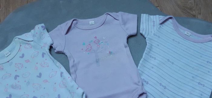 Lot de 3 bodies MC blanc/parme 1 mois en très bon état - photo numéro 3