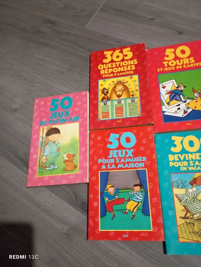 50 jeux pour s'amuser a la maison 300 devinettes 250 devinettes 400 devinettes sur les animaux 50 jeux de plein air 365 questions réponses 50 tours de cartes 50 tours de magie 300 histoires drôles
