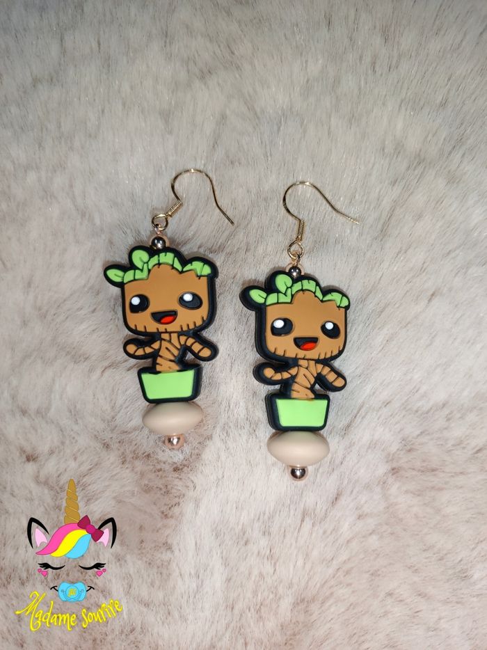 Ses boucles d'oreilles Marvel Groot fantaisies pendantes sont parfaites pour vous embellir. Originales et uniques, à votre image, elles s'accorderont parfaitement à toutes vos tenues. Base en acier inoxydable, plusieurs coloris disponibles. Respect des normes CE, composée de perles silicone alimentaire et/ou bois naturel. 100% personnalisable, énormément de choix de clips, perles, etc… Envoyez-moi un message afin de créer main dans la main votre accessoire idéal. Une photo du prototype de celui-ci vous est envoyé pour validation avant envoi.