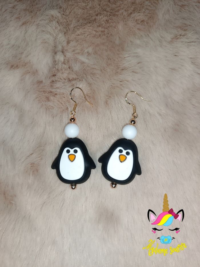 Ses boucles d'oreilles Pingouin fantaisies pendantes sont parfaites pour vous embellir. Originales et uniques, à votre image, elles s'accorderont parfaitement à toutes vos tenues. Base en acier inoxydable, plusieurs coloris disponibles. Respect des normes CE, composée de perles silicone alimentaire et/ou bois naturel. 100% personnalisable, énormément de choix de clips, perles, etc… Envoyez-moi un message afin de créer main dans la main votre accessoire idéal. Une photo du prototype de celui-ci vous est envoyé pour validation avant envoi.