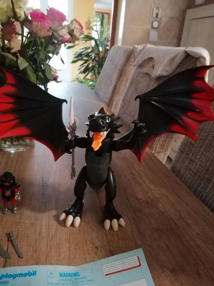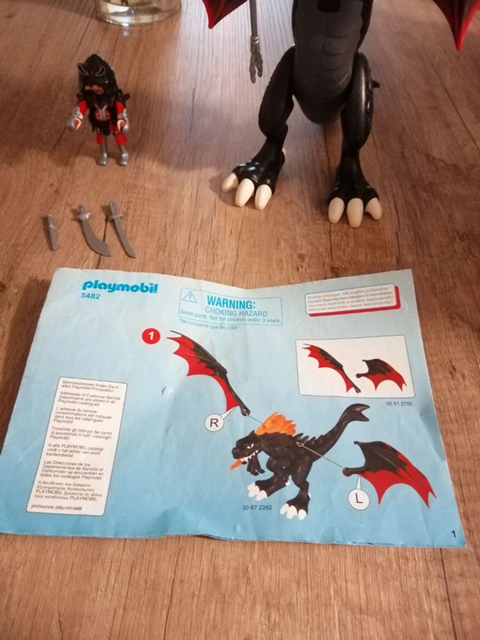 Playmobil dragon 5482 Complet avec la notice Il n y a pas la boîte. Je n'ai pas de pile pour essayer le dragon, je ne sais pas si il fonctionne encore (il fait de la lumière) #Daddy11playmobil
