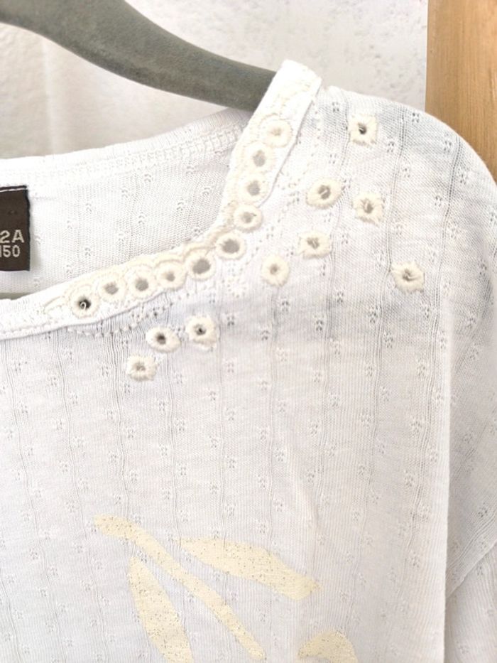 #loulaliefille12ans dans la recherche pour voir tout mon 12 ans fille T-shirt IKKS manches longues blanc motifs fleuris crème légèrement pailletés . Broderies Kiabi seconde main et beebs possible