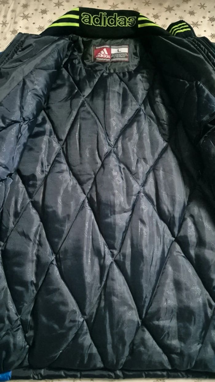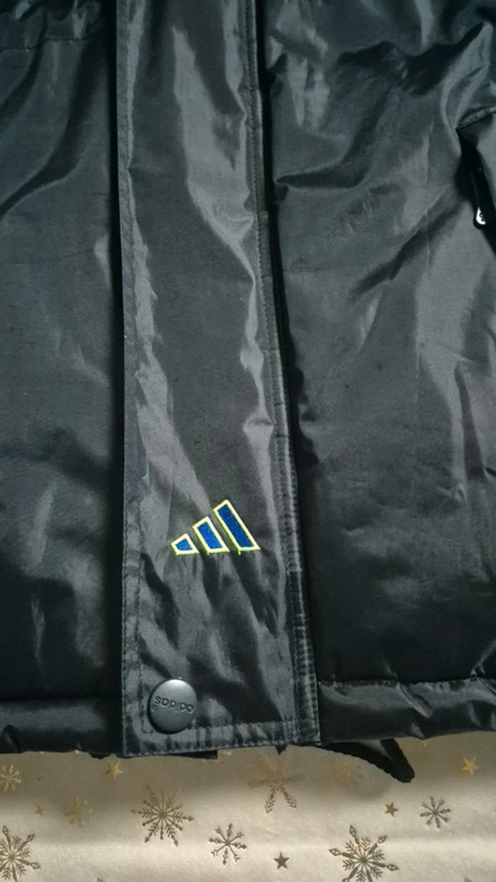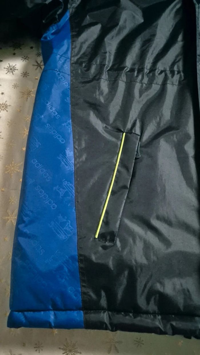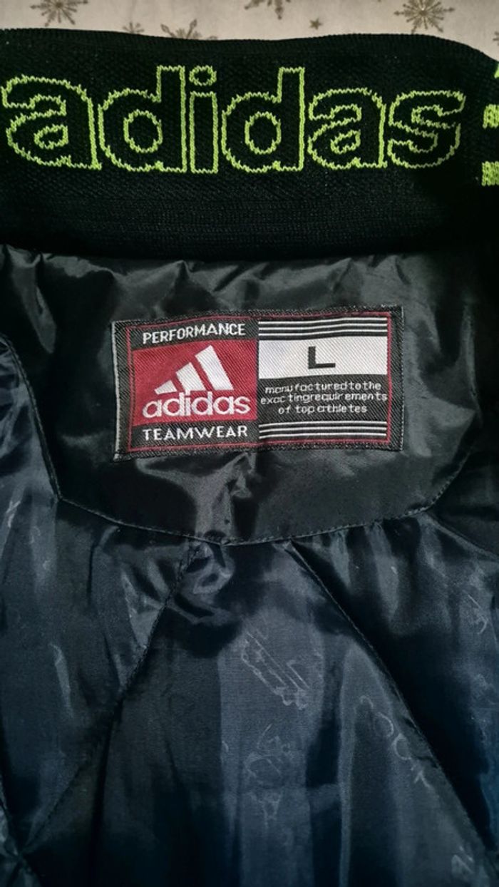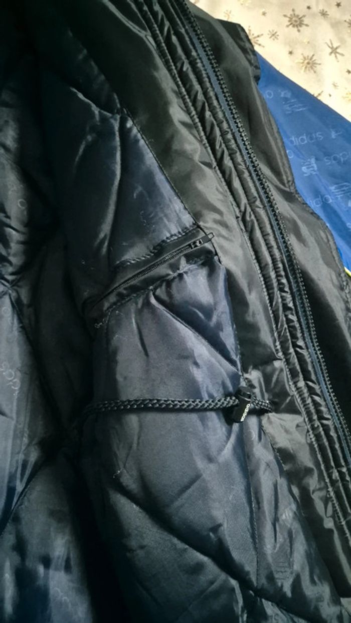 Veste mi longue Adidas. Style coach Manque la capuche. Cordons pour resserrer la veste à la taille et en bas. 2 poches avant et 1 poche intérieure Taille L Très chaude. Parfait état Mesures ⬇️ Aisselle à aisselle : 67cm Longueur : 84cm