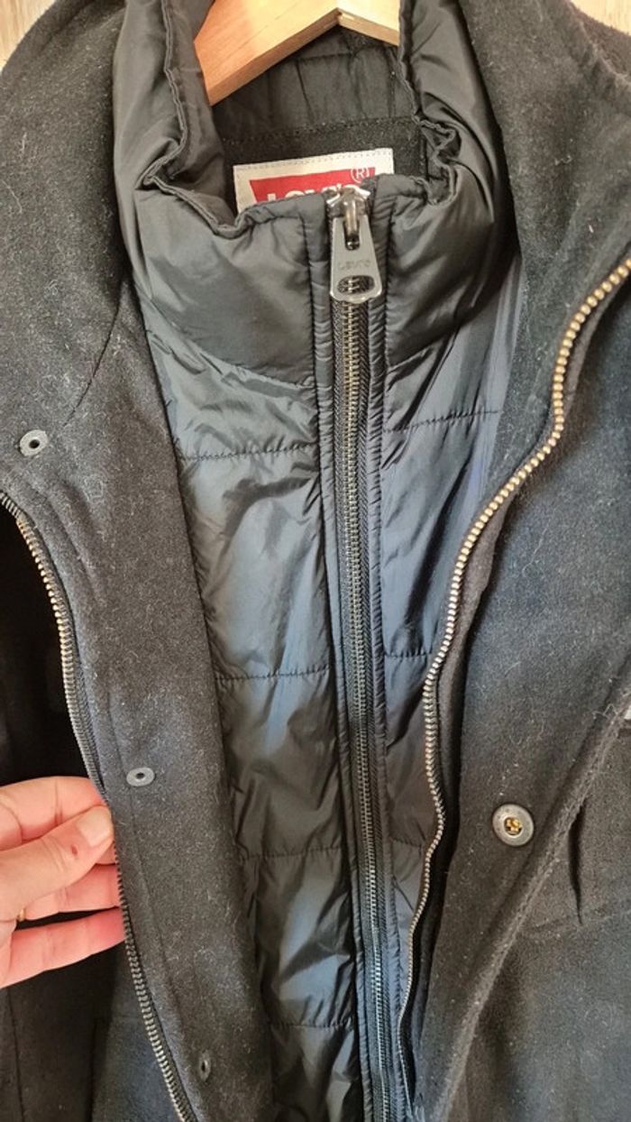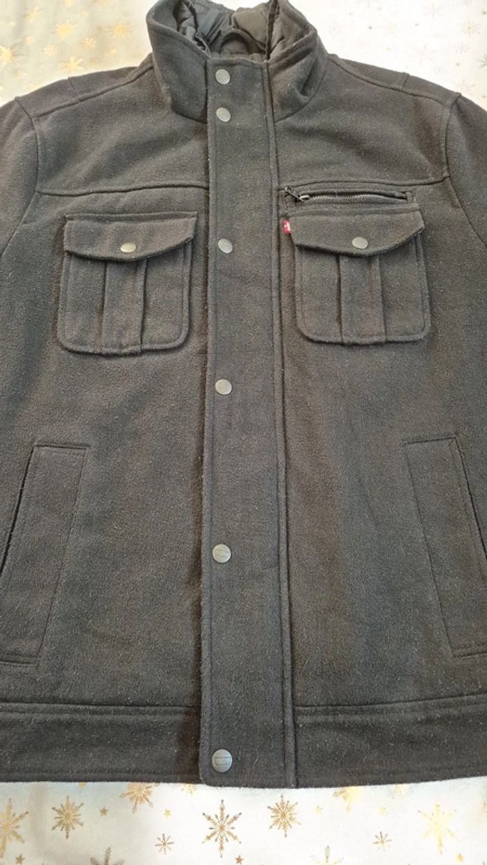 Veste Levi's chaude noire. Taille M Bon état (quelques bouloches) Col montant Doublure intérieure style doudoune. Mesures à plat : Épaule à épaule : 49cm Aisselle à aisselle : 61cm Longueur : 70cm
