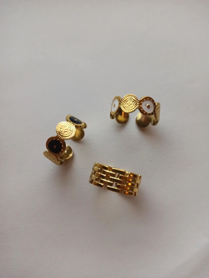 3 bagues en acier inoxydable ajustable doré résiste à l'eau très tendance - photo numéro 1