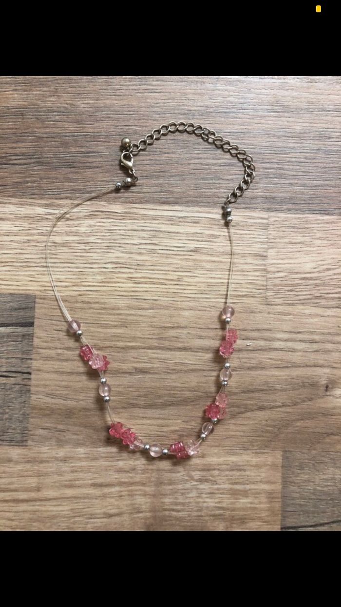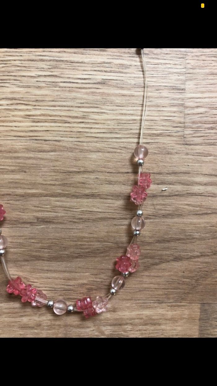 Collier acheté dans un boutique indépendante en bon état 20 cm de longueur (ajustable avec le fermoir) fil rose avec perles et fleurs de 2 couleurs