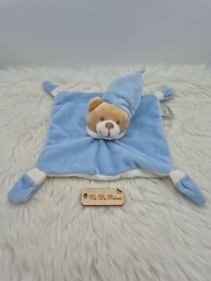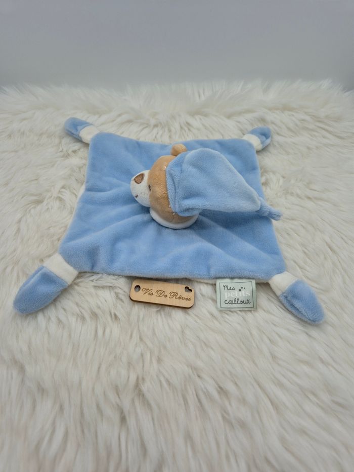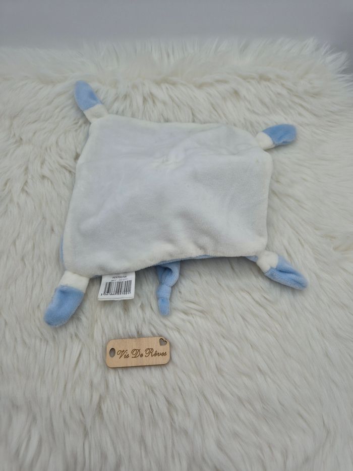 Doudou plat carré Beige bleu Mes Petits Cailloux - photo numéro 4