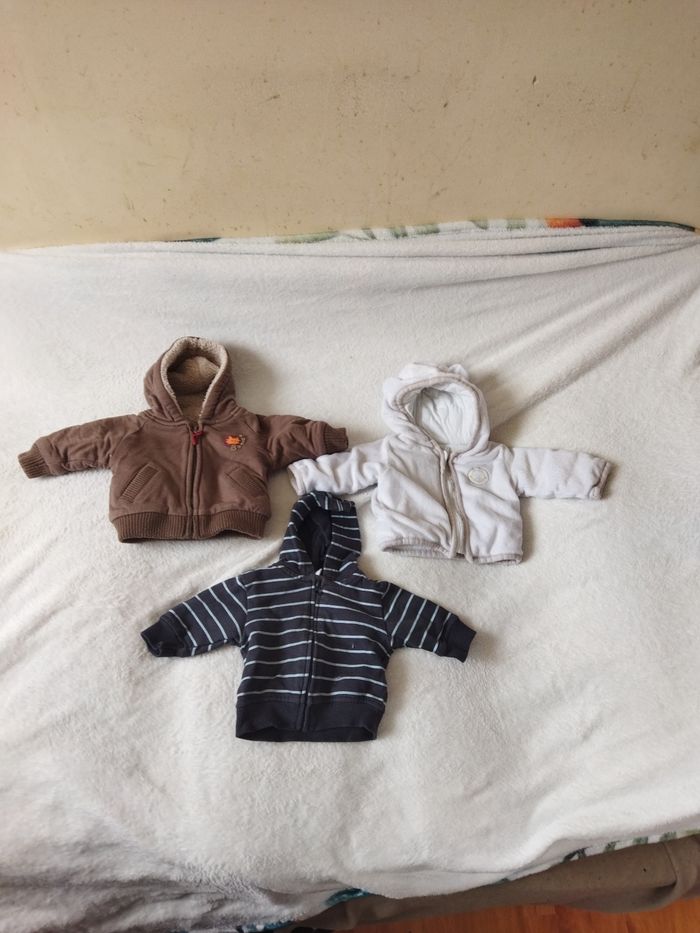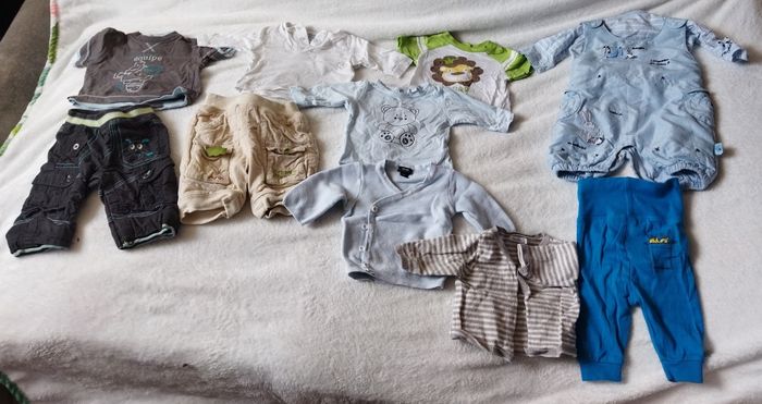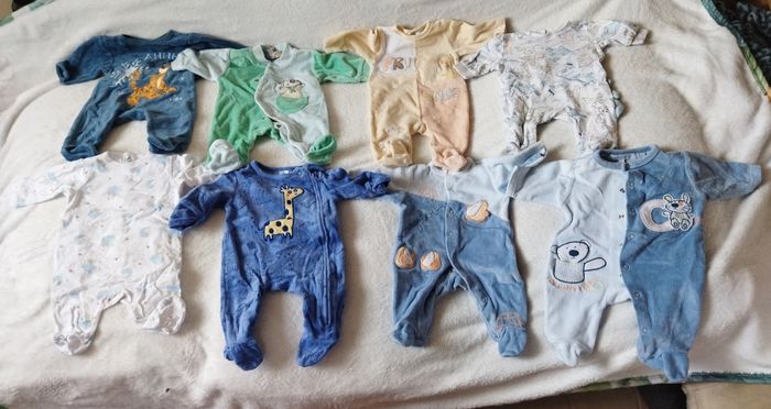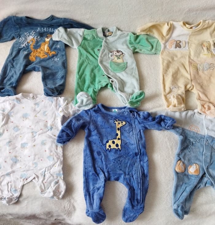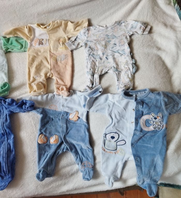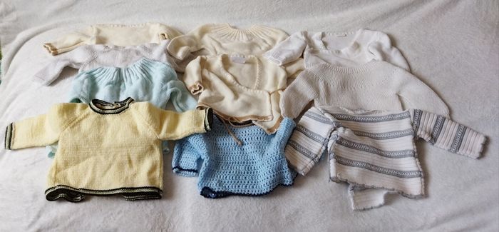 Brassières en laine, pyjama/grenouillère, body, tenues (haut manches longues et courtes ainsi que pantalon..), chaussette et petit moufles/gants, 2 blouson polaire et une veste polaire également.